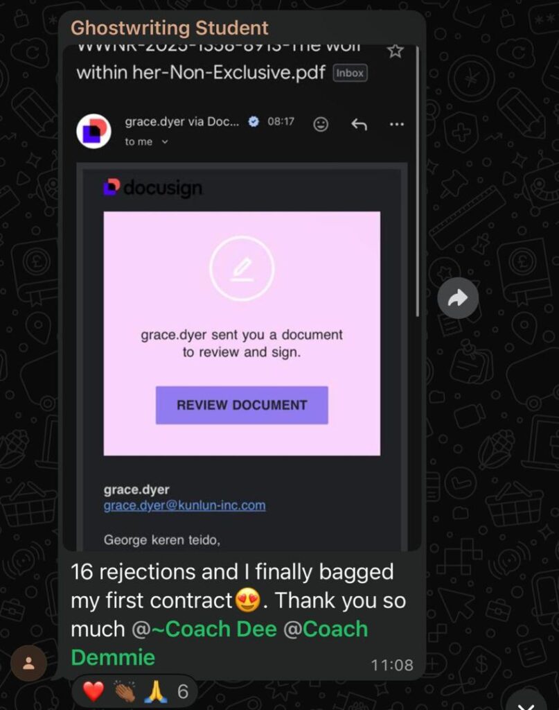I stumbled on ghostwriting one random day through someone’s WhatsApp status. The training was affordable, so I jumped on it but the journey wasn’t all rosy.